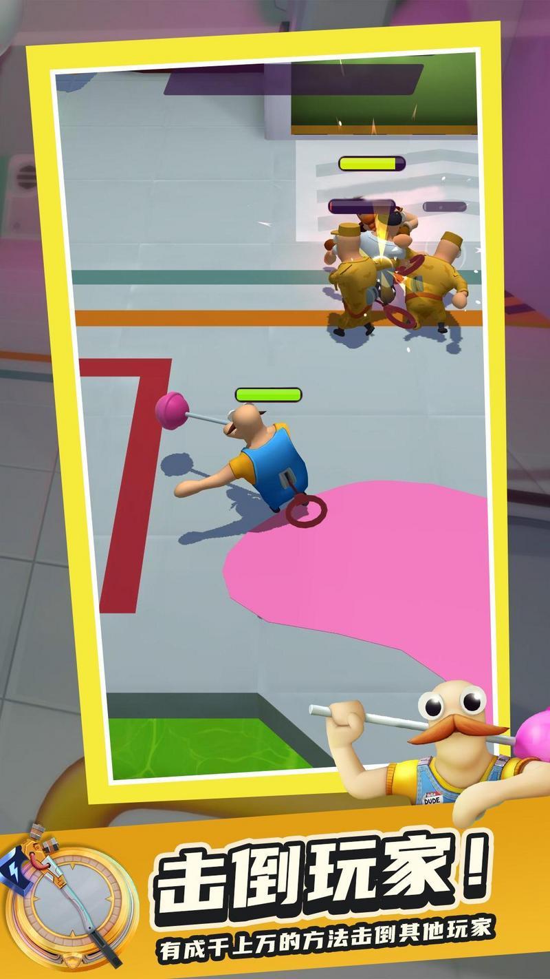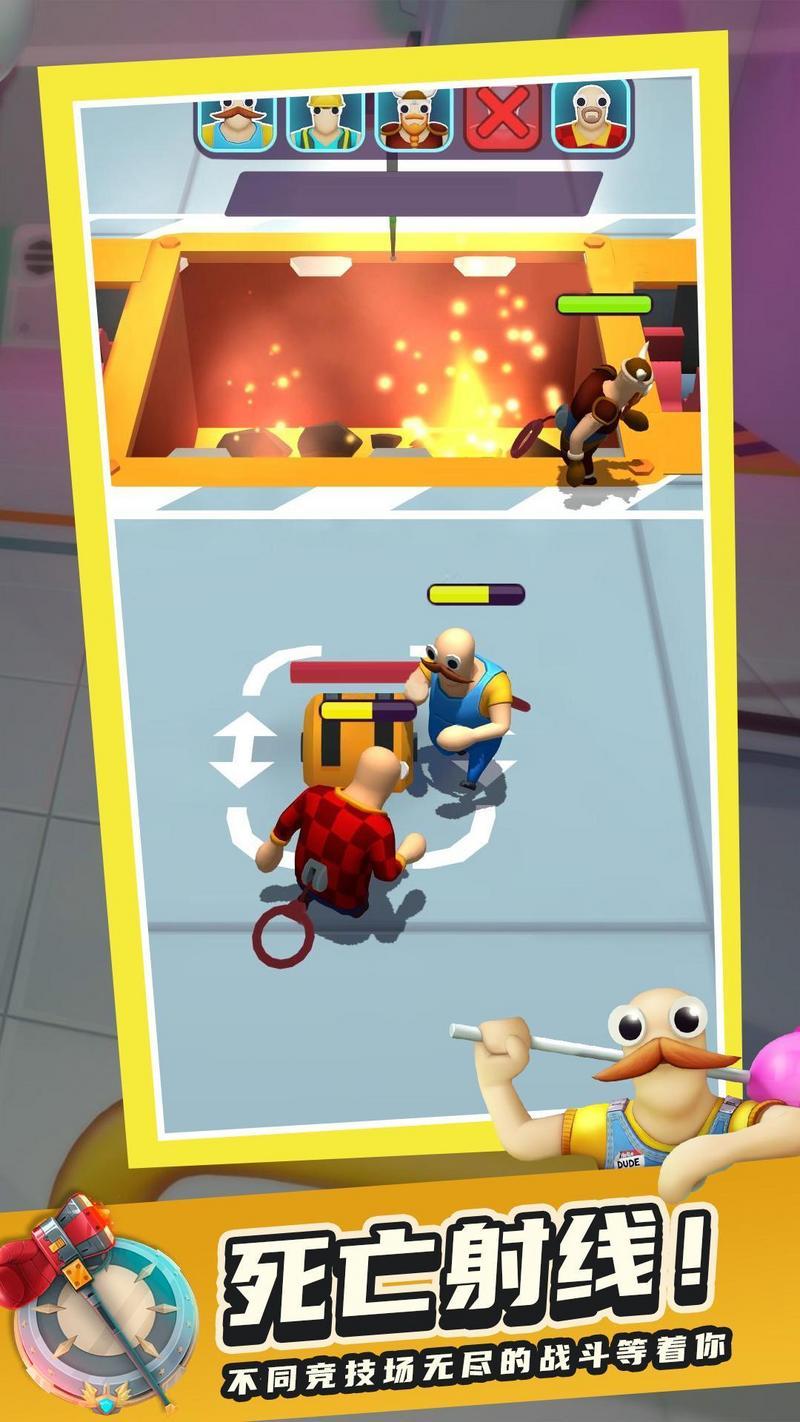 1.是款休闲多人竞技的手游,手游的画面卡通,手游音乐是很搞笑魔性的。