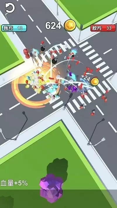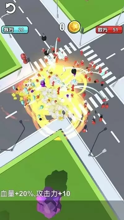 ·在大马路上展开对战,蓝色方与红色方分别率领一群小人展开战斗