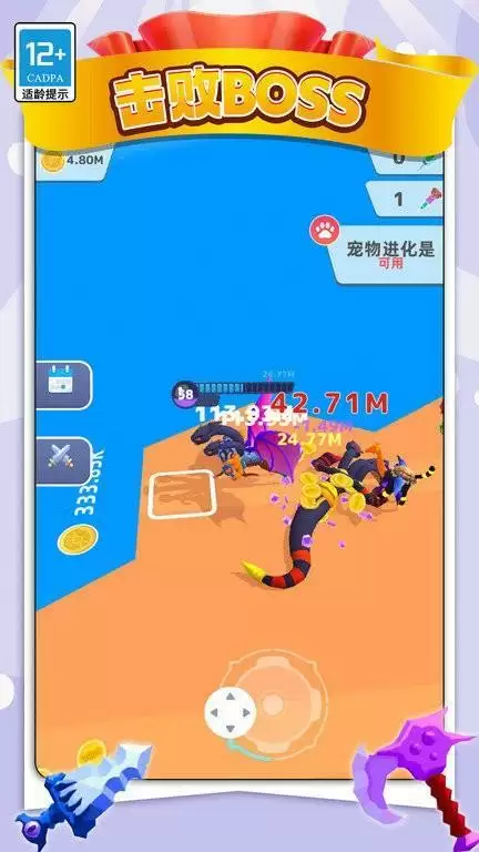 非常好玩非常有意思得怪兽对决类型得闯关手游,在异世界中找到猪队友,对抗强大对手,沿路收获Q萌的变种宠物。同时在手游中不要断捡取金币与注射器,手游内容做的十分的不要错,画风新鲜手游的细节和机制设计的十分的合理。