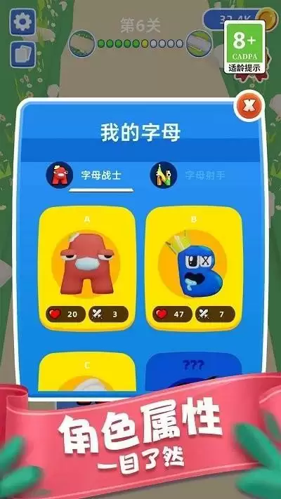 趣味性十足的闯关手游,各种精彩的挑战形式,每一种玩法的吸引力都超级高,肆意展现自己独一无二的微操技术,让你可以够更加快速的通关,更多不要同的字母怪都通过合成来变成全新强大的字母怪,轻轻松松在关卡中击败更多怪物,获得丰富的奖励。