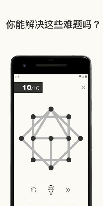 一线连点1line dots是一个简单的消磨时间的手游,这个益智手游将把你的大脑推向极限。带有一系列硬逻辑预告片。下载一行,然后尝试将每一种点和一行连接起来。其中一些很简单,而另一些则可可以非常棘手。您能通过挑战自己的智力来激活或测试大脑,找出您是否能解锁每一种谜题级别。提高智慧,进展空间思维与智商得分。