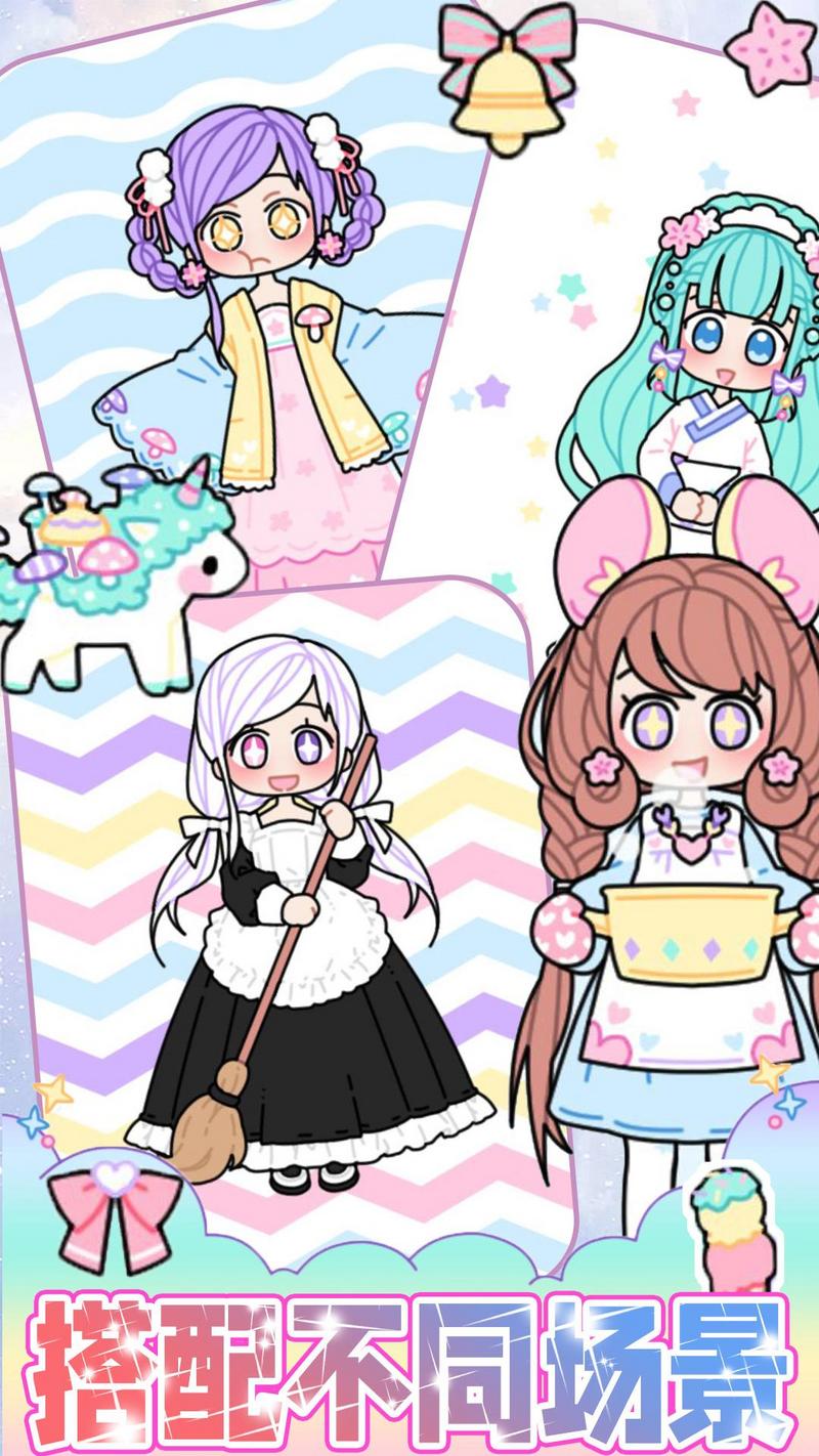 玩家能享受独特的手绘风换装体验,场景里面增加了角色造型与可喜欢的贴纸,