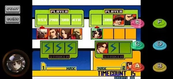 在KOF2000四人组的基础上,KOF2001能自定义出场人数,能四个人出场也能一个人出场。
