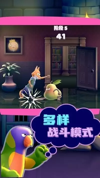 以宠物为题材的格斗手游,参和到不要同的战斗比拼之中,与鸭子一起来纵情的格斗吧,手游还有大量的模式玩法可以够自由选择,操纵自己的角色与对手纵情的互殴吧。