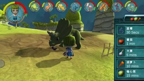 --你能通过操作来操纵恐龙的行动。能让它们疾跑、喝水、吃东西甚至是种菜!它们可聪慧可厉害了!