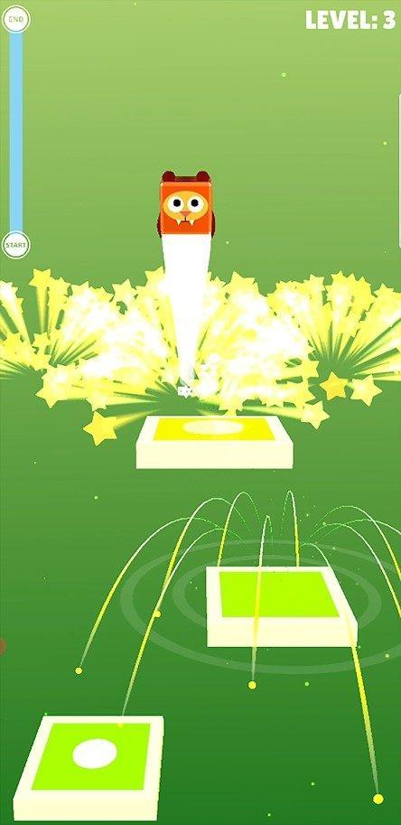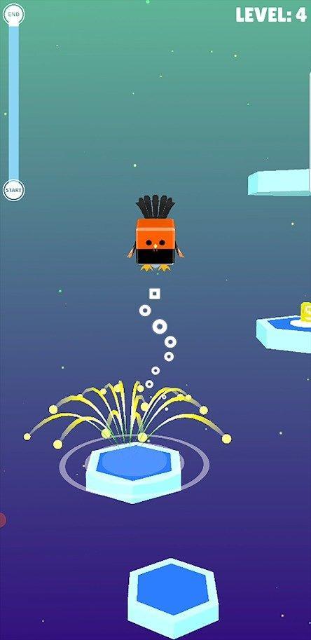 3、手游的操作方式非常简单,点击屏幕就能在关卡中跳跃,通过一个障碍到达终点;