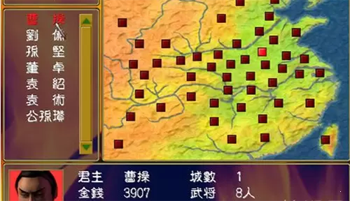 有一定技战术能力的玩家,可以考虑刘备,1城4人,占据平原,四面临敌,有一定难度,但只要能够搜索到太史慈、徐晃、管辂,就可以考虑北上从消灭袁绍(就为张郃、田丰),从而扩大根据地,待机南下