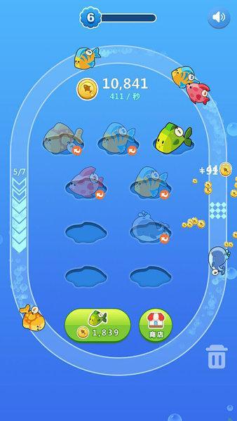 (1).点击拖动,合并升级你的小鱼,收集各种海洋鱼,打造你自己的海洋王国