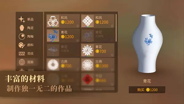 1、玩家能自由选择丰富的制作材料,能让自己精心制作的陶艺作品别具一格。