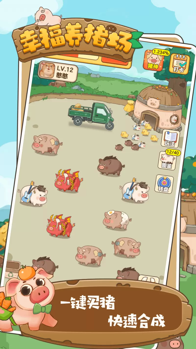 幸福养猪场带给大家非常有趣的益智休闲玩法,大家在游戏中可以进行养猪行动,大家可以通过养殖相同的猪猪,来进行合成为更好阶级的猪,例如快乐猪、富贵猪、猪八戒、猪神等等,通过不断的进阶来获取更多的游戏奖励,同时,幸福养猪场游戏还可以在游玩的过程中赚取零花钱,喜欢的用户快来下载吧!