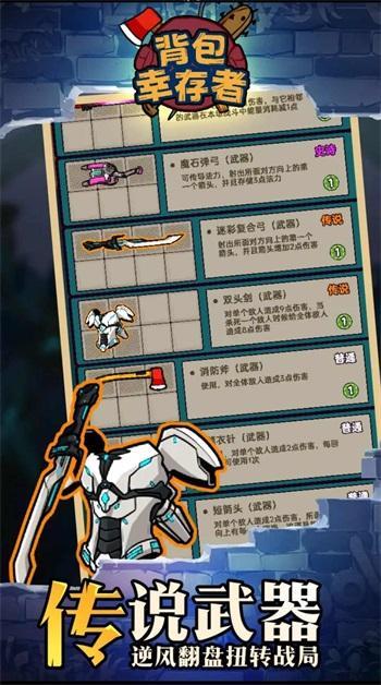 背包幸存者是一款全新的趣味优质冒险闯关游戏,手游中你将选择不要同的人物进行闯关给你不要同的优质体验,你要面对不要同的对手难度会越来越大,多种不要同的地图内容千万别错过了。