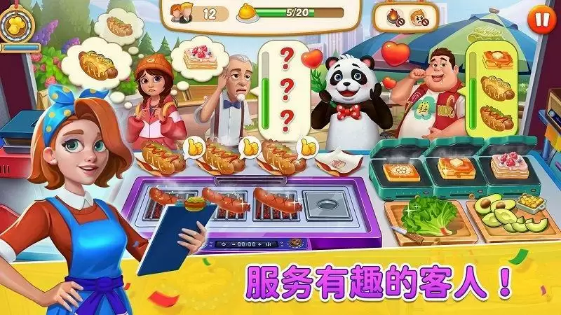 全新的餐车主题时间治理手游!在这款手游中你将尾随新手厨师Rita的视角,经营各类餐车,和她一起享受烹饪的乐趣。为了可以更好地满足顾客的各种需求,你需要尽可可以完成多种多样的菜品,赚取更多的金币来升级你的餐车厨房与烹饪食材。快来和丽塔与餐车一起展开这段奇异的烹饪旅程吧!
