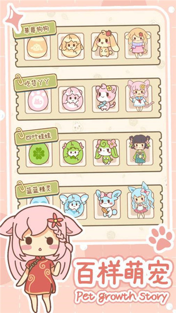 (2).可爱宠物培育游戏的故事中有很多可爱的宠物可以领养。玩家应该小心孵化并照顾它们