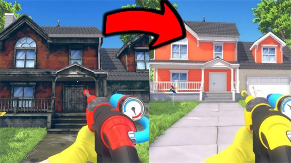 e.你的房子最开始需要自己打理,他有点脏,拿水枪把他清理干净。