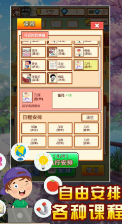 2、学习能购买带有“德智体美劳”属性的学习道具(第一阶段只开放“智体美”),购买成功后的学习道具会浮现在房间内,点击房间内的学习道具即可让孩子进行相关属性的学习;