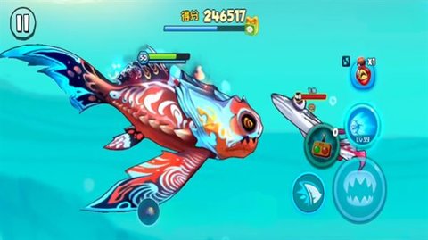 三.通过吞噬其他鱼类来壮大自己,玩家可以感受到鲨鱼独特的猎食和成长历程。