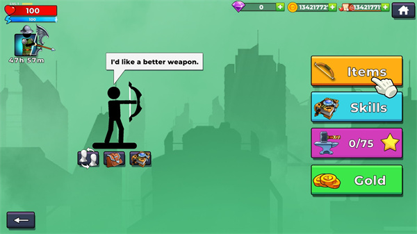 简单画面手游采纳简洁的横版画面设计,以经典火柴人为主角。