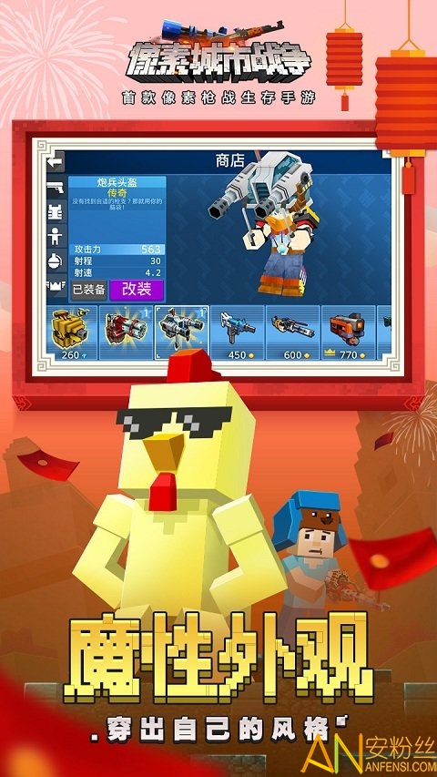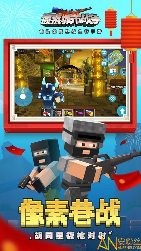 (a).13种超棒的多人游戏模式:团队死斗、自由PVP战斗、像素猎人、坦克战、街头竞速和感染僵尸模式。