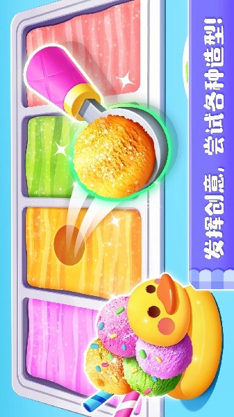 各种形状的糖果、甜甜的果酱、太阳伞、圣诞树等多种装饰品,让你尽情发挥想象力,打造最具创意的冰淇淋。