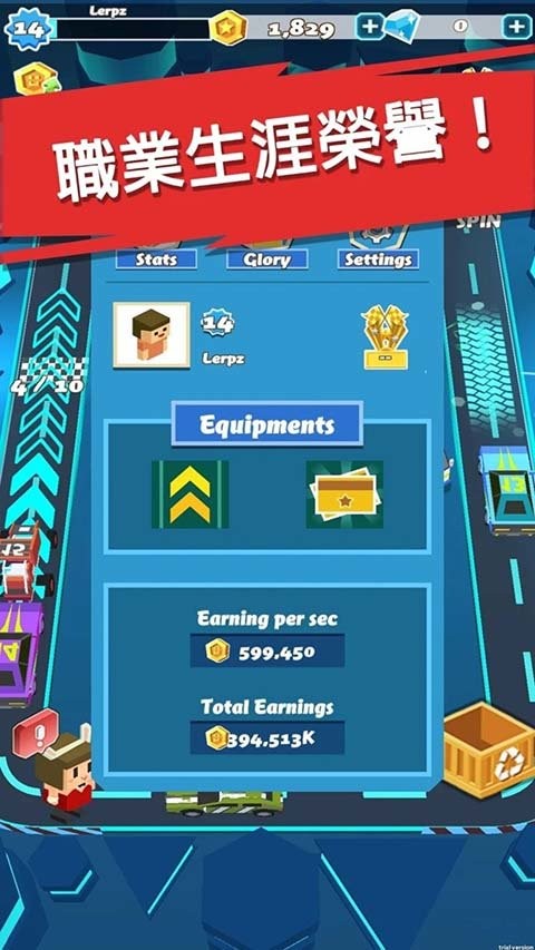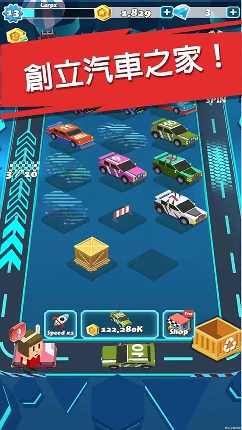 (一).作品拥有有趣的放置内容,而且您的赛车可以参加其他比赛并且赚取金币。