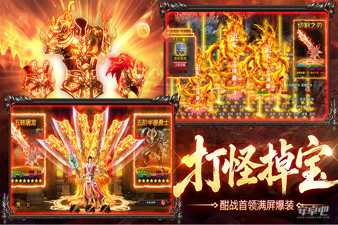 4、烈火战神元宝公益服是款变态传奇游戏,首充送VIP,各种元宝、金币、道具礼包免费领!游戏特效华丽,视觉效果震撼,体验真正带感!可以带领大家重温复古传奇,再创史诗奇迹!推举你上线来试试哦