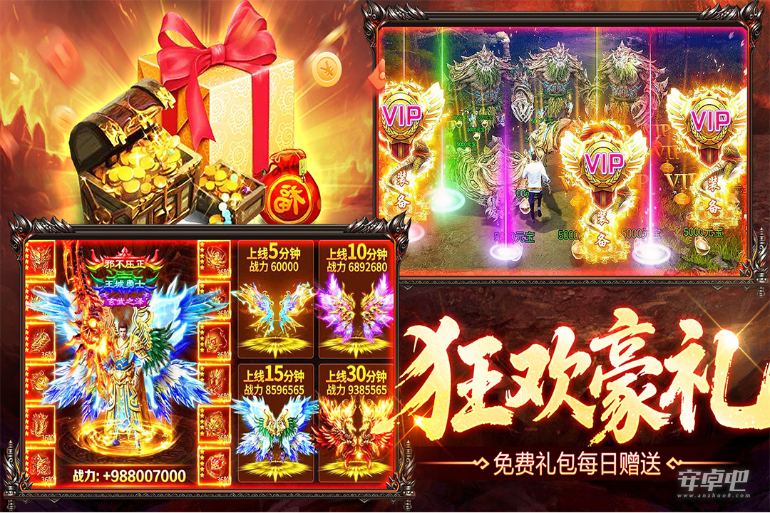 上线赠送vip5、元宝12888、金币80w