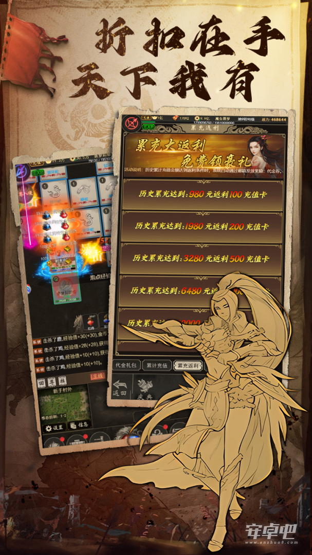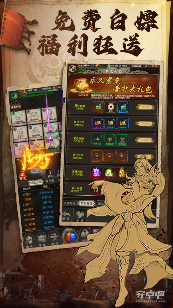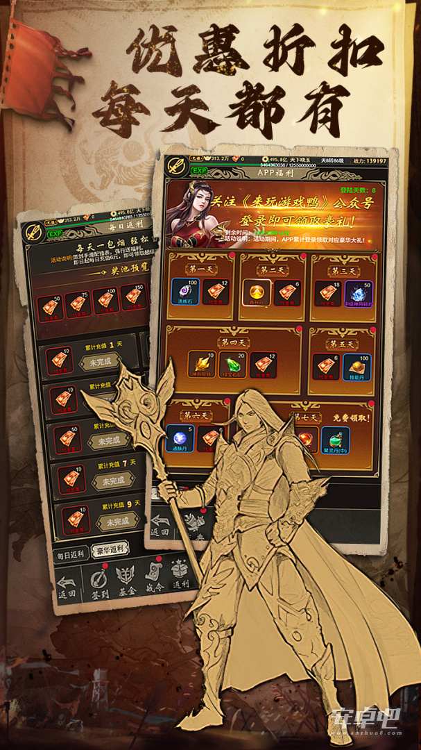 2、刺激精彩的挑战来袭,签到就可以得到极品神装,一起自由的挂机pk
