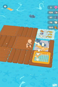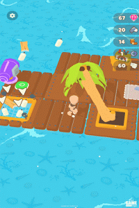 2、玩家在手游中将只身处在一只小船里,为了可以够生存下去,玩家要利用船上仅有的工具打捞各种小鱼食物,收集沿途中的木板与树枝等物品加固自己的小船,让自己成功划到小岛上进行冒险