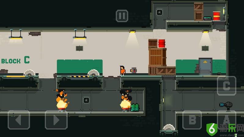 《监狱炮轰》是一款横版动作游戏,不大可能像《越狱》一样花费大量的篇幅进行铺垫,讲述如何巧妙地逃离监狱。它的内核不过以监狱为场景展开的一系列冒险,玩家要帮助名为 Jake 的犯人从一所国家监狱成功逃脱。