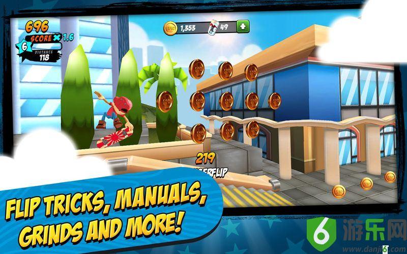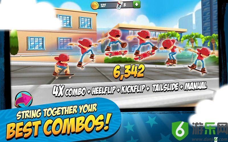 《滑板传奇 Epic Skater》是一款横版滑板跑酷游戏,你只需要侧滑、点击屏幕即可在洛杉矶的街头进行无尽的飞跃,这款免费的滑板游戏,你可以你掌握数十种技巧,组合成无穷的组合。组合最精湛的技巧,奔跑最远的距离,用你的方式获取最高的得分!