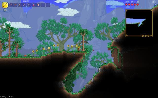 在完成角色自定义后,《Terraria》就把你扔进了一个完全随机生成的像素世界中,手头的工具意味着玩家需要造东西、探索世界并打败怪兽。这游戏对于新手来说或许有点难上手,但别担心,游戏会指导你进行游戏,但并不是很详细,所以你不得不查阅该游戏的维基百科页面才能了解到具体的信息。尽管游戏没有现实故事背景或者史诗般的任务,但游戏中的奇幻色彩和设定却让人相当着迷。整个游戏世界都是可破坏的,破坏某些障碍物后,你就可以找到各种资源比如石头、木材、铁矿或者其他装备,当然,在你不断深入的同时,你也会遇到各种怪物。游戏的主要任务就是让玩家利用各种资源按自己的想法创造出各种稀奇古怪的东西,所有这就让玩家充满了探索的动力。