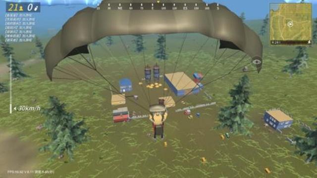 2、64km2的大地图,有城镇,有野点,有树丛,有草丛,每局支持100名玩家对战。