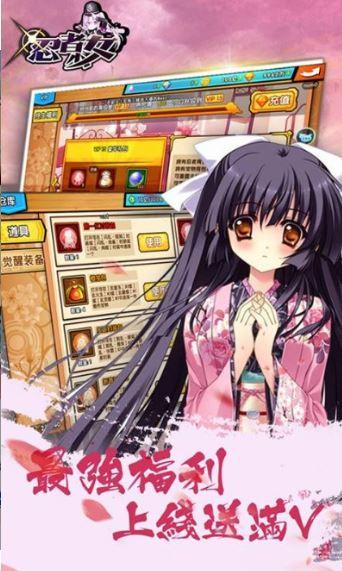 忍者少女满v版是一款以忍者为题材的手机游戏。游戏采用了二次元卡通动漫为背景,清新可爱的画风给玩家打造了一个全新的世界!超多美少女,独特的养成玩法等待玩家体验!上线即送满V,还有大量的金币等待玩家领取!