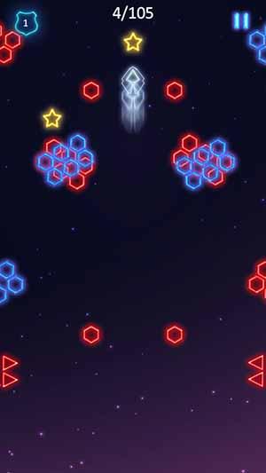 霓虹灯喷射机游戏中玩家操作发光小球,小球高速前行,你要让小球从平坦的地方通过,不要被阻碍了。游戏速度会越来越快,更难挑战。控制不断变化颜色的小球在相同颜色的跑道上前进,注意躲避障碍物获得高分!
