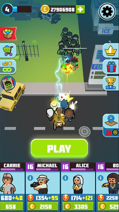 如果你厌倦了奔跑,但想继续击杀僵尸 - 你可以选择放置模式。 加强你的团队战力,解锁新的复仇者 - 即使你在睡觉,他们也会继续和僵尸战斗!