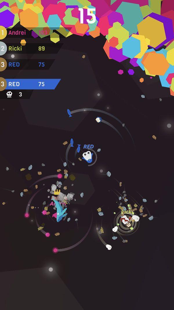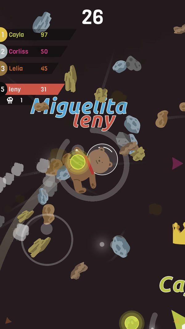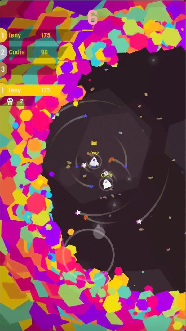让玩家可以和全球小伙伴们同屏竞技对战,控制自己的飞船利用自己的引力轨道来吸收各种小圆球,