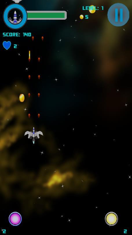 1、高清的游戏画面,用手指控制飞船的飞行方向