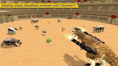 4、探索恐龙反击的多个层次,用各种凶猛的动物如狮子、河马、老虎、犀牛等来追逐和射击。