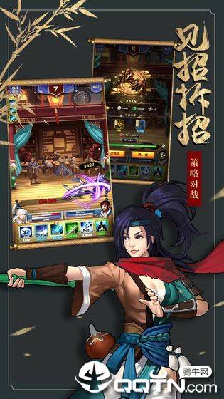 轻松、休闲但同时又带有一定策略性的武侠游戏。轻松休闲和策略看似是矛盾的,但我们一直希望能够找到适当的平衡点,将两者很好的融合在一起。武侠一定有刀光剑影,但刀光剑影却不一定是很硬核的;策略游戏一定需要动脑,但却不一定是烧脑的。我们花了很多心思来打磨这种轻度策略的玩法,相信能够让各位少侠轻松过招,只须动脑,无须动手。