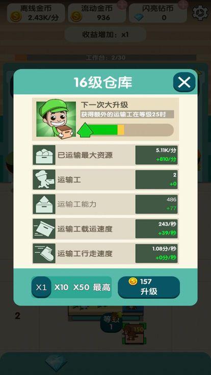 2、将你的工厂去进行全天候的运转,玩家不用时时刻刻在线去游戏,离线也能获得更多的收益;