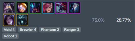 机器人、挖掘机、大虫子、蔚、螳螂、卡莎(带悠米)、死歌、千珏(4虚空4斗士3法师2游侠2暗影)