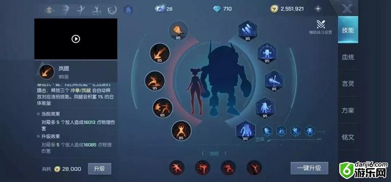 辅助战斗设置中的【日常输出】这套连招比较百搭,【日常输出】会依次释放金刚劲→苍炎翔轰拳→飞燕,再释放多种连招技能,最后与机甲进行合体,将每个技能的冷却时间利用到极致,在有限的时间内造成更多的伤害。