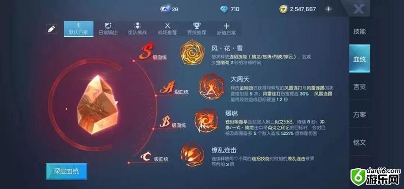 基础血统选择:C级【缭乱连击】→B级【爆燃】→A级【大周天】→S级【风·花·雪】。