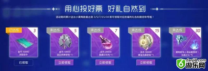 累计送出3个小黄鸭:金币*10000、求助指令*1;