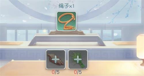 3、绳子:需要五个茅草、五个树皮制作。其中,树皮需要徒手在油桐树上采集,否则不可获取;
