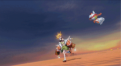 若晴天娃娃处于跟随状态,则会同时释放方向一致的[炎晖]。