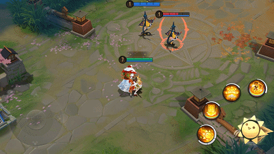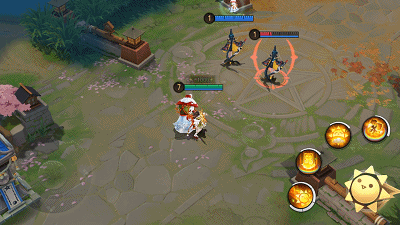 日和坊在指定位置释放暖日,短暂延迟后暖日将朝日和坊的反方向前进,对路径上的敌人造成法术伤害和减速效果。暖日飞至最远处后将飞回晴天娃娃身边,对返回路径上的敌人造成法术伤害。