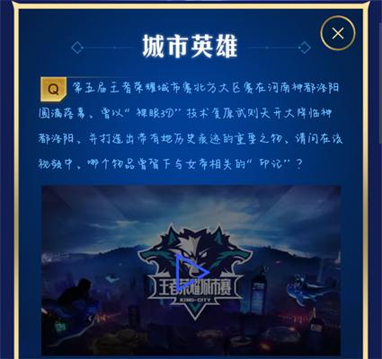 王者荣耀峡谷探秘城市英雄答案是什么?王者荣耀开启了峡谷探秘活动,参与活动可以领取免费头像框,那么城市英雄这个站的答案是什么呢?下面一起来了解一下吧!