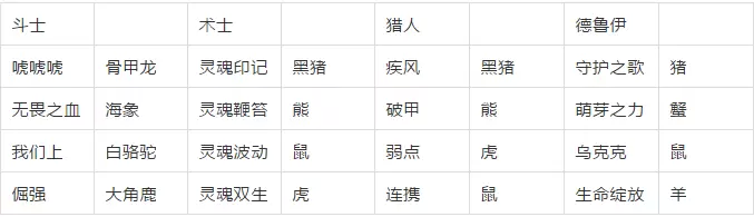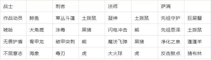 各职业的技能排布