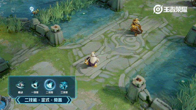 弈星的大招是由一股浓墨从天而降,在地面上散发成一块巨型的金色棋盘,棋盘变得金光闪闪,视觉效果看起来冲击力更大,并且充满高级感。